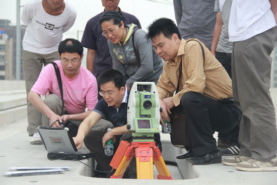 随后,学院领导一行人来到广州-珠海城际高铁工地施工现场进行了调研,了解高速铁路无砟轨道精调工艺的具体操作流程。铁道工程教研室的教师还亲自操作演练,并与太阳成tyc234cc高铁测量公司现场施工、测量人员进行技术交流。参加调研的教师一致认为:零距离地接触到高铁无砟轨道施工能更有效地落实基于工作过程的教学行动纲领,希望以后有更多的机会亲临施工一线。