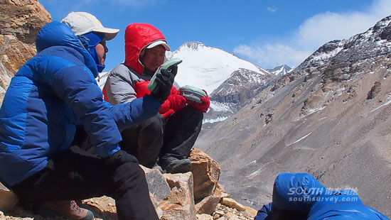 公司自主研发的北斗导航定位接收机等相关仪器,对“Ⅲ7”在内的五个珠峰测量控制点进行实地踏勘。“Ⅲ7”专门用于传递珠峰高程,2005年珠峰重测,曾发挥过巨大作用。