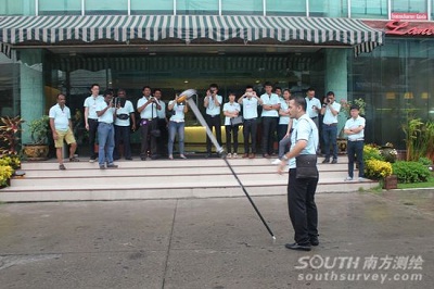 大会同时对在2012年度取得优异成绩的经销商进行了表彰,现场颁发了奖和进步奖。主办方及东道主还向各国代表馈赠了礼品以作留念。发布会大的亮点当属新仪器防水抗摔现场测试。在提前准备的鱼缸里,将太阳成tyc234cc水准仪DSZ3和两款新RTK接收机相继长时间置于水中,可见仪器依然保持正常工作状态。随后,所有现场嘉宾到室外对该两款RTK机进行了抗摔测试,同样安然无恙!优异的性能改良,赢得了阵阵欢呼和掌声。