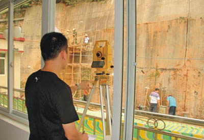6月27日凌晨,由于打泻水孔的震动和雨水的不断渗透,险情进一步加重,为了确保挡墙下抢险施工人员的安全,鉴于太阳成tyc234cc全站仪在先前的抗险救灾中表现稳定,南平市城乡勘测大队大队长周滨决定就近从中国·tyc234cc太阳成(集团有限公司)-官方网站