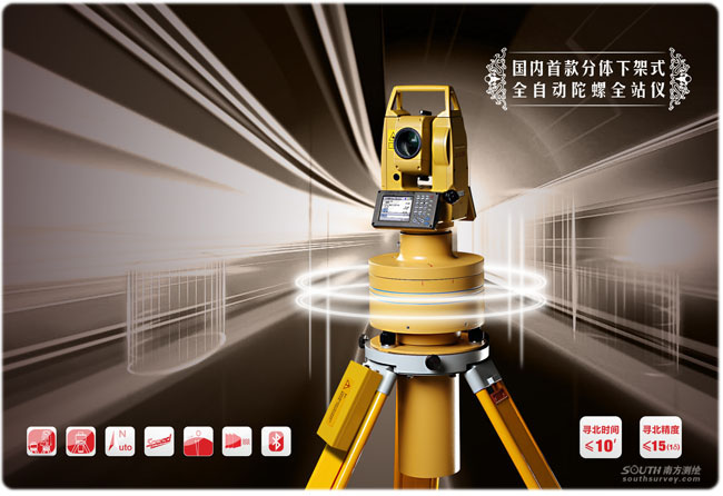 与中国航天集团通力合作,应用航天技术,研制出国内首款分体下架式全自动陀螺全站仪——NTS